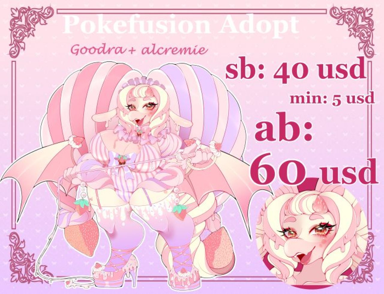 New auction: Pokefusion Goodra + Alcremie "Sucubu clown" Adopt OPEN